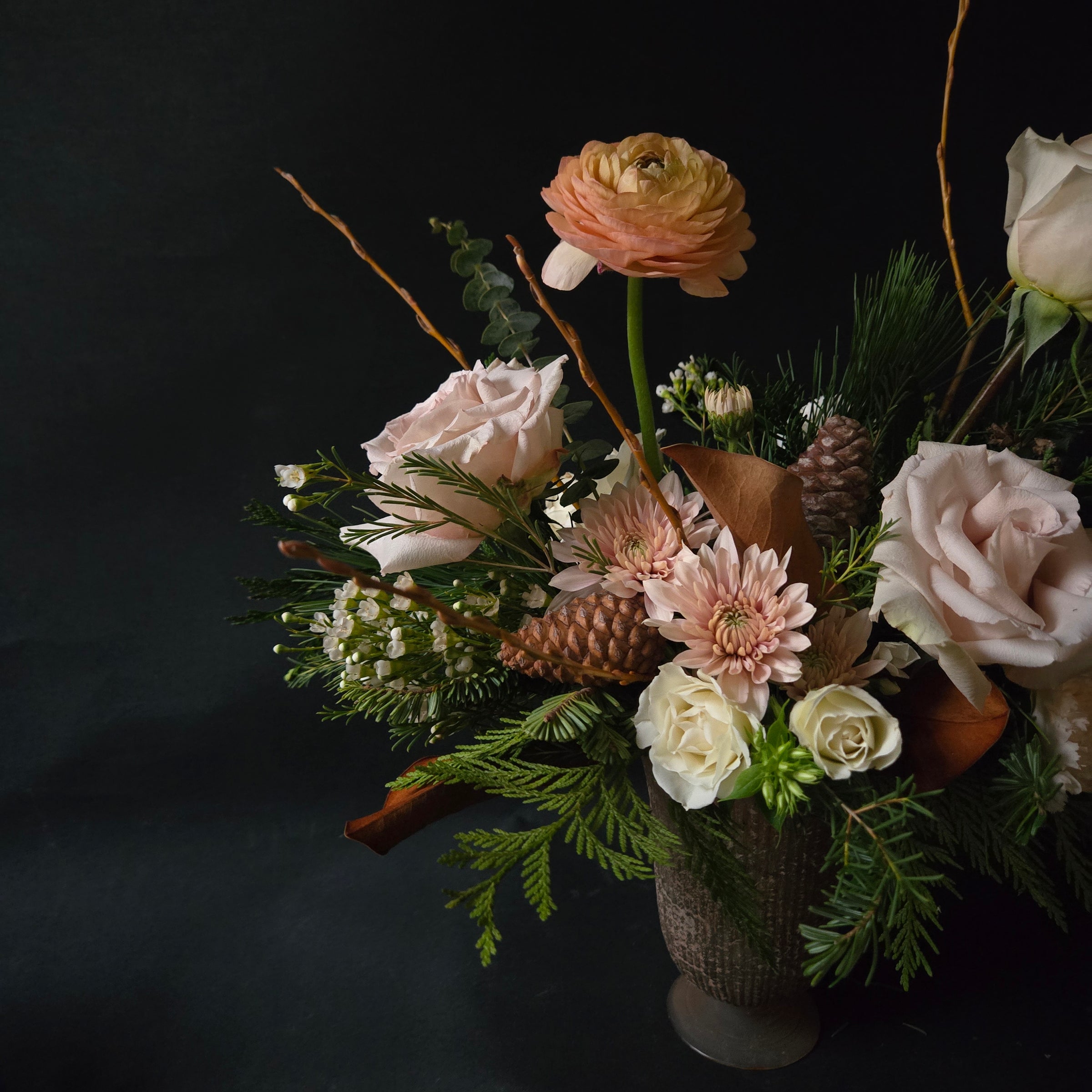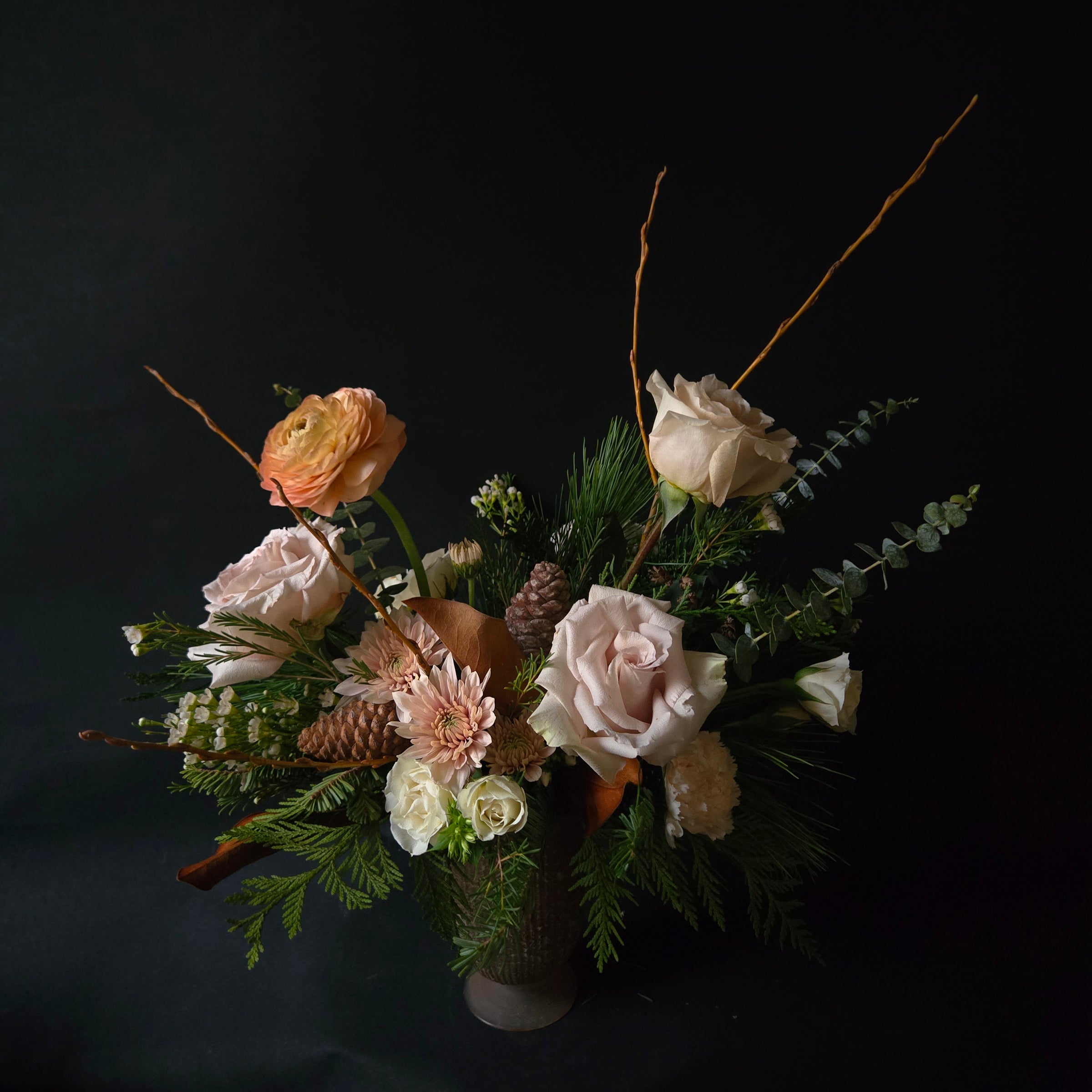 Each arrangement is made to order and one of a kind, designed with fresh ingredients. Please leave a little direction in the order notes as to colour preferences. All flower selections are designer's choice based on availability at time of fulfilment